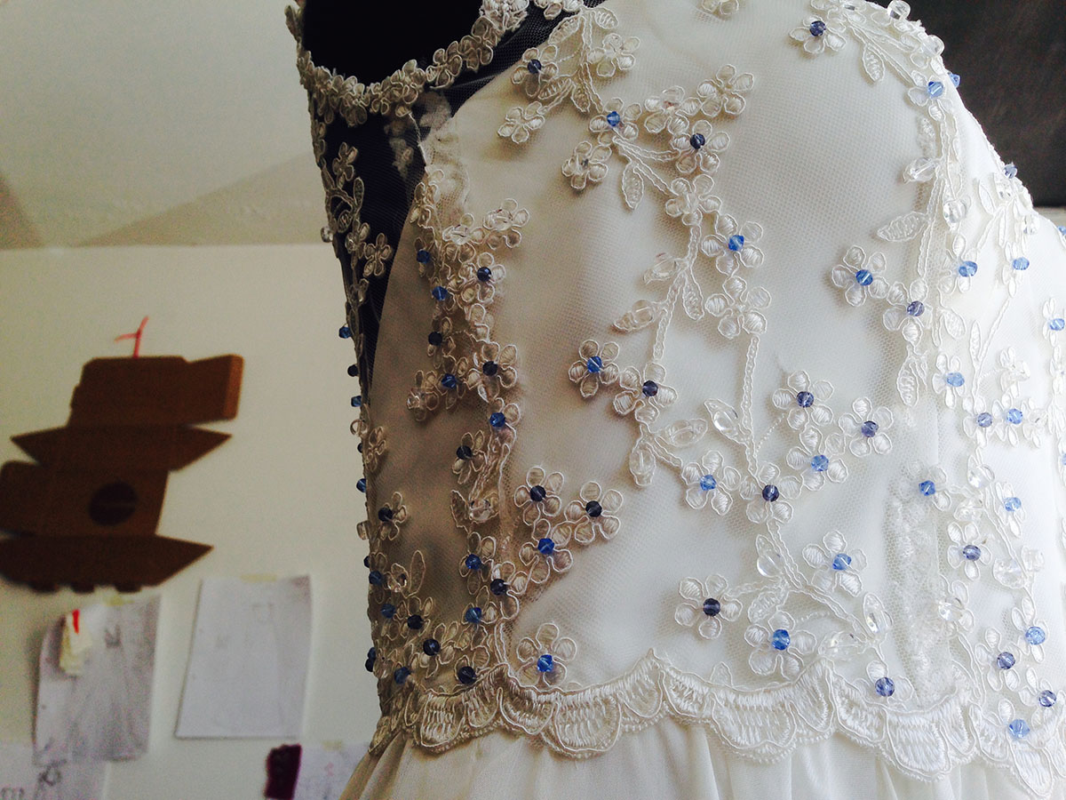lentejuelas vestido de noviatull bordado noviabordado de vestido de noviaVestido de novia con detalles azulesvestido de novia con cristalesflores de macramevestido de novia con cadenitas